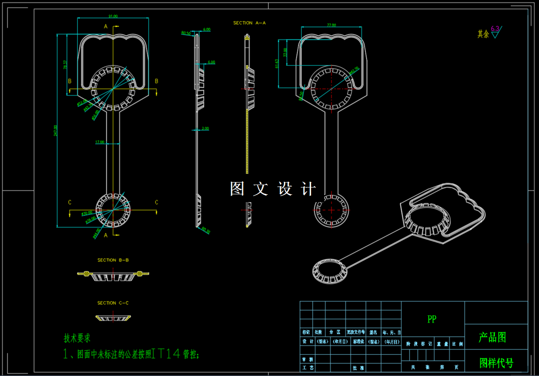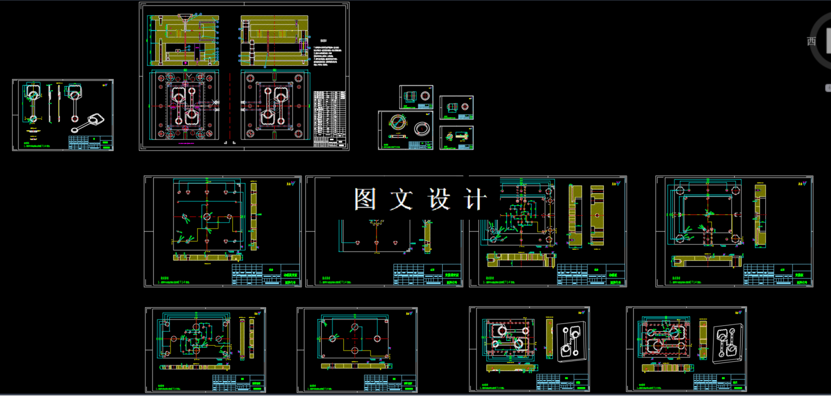 本次设计的产品为连接环,具有重量轻,强度高,耐腐蚀,易清洁等 特点,为大批量生产产品。本次设计在针对产品进行工艺性分析后,确定模具分 型面、 型腔数目、 浇口形式、 位置大小; 其中最重要的是确定型芯和型腔的结构, 以及它们的定位和紧固方式。此外还进行了脱模机构的设计,合模导向机构的设 计,冷却系统的设计等。最后绘制完整的模具装配总图和主要的模具零件图及编 制成型零部件的制造加工工艺过程卡片。