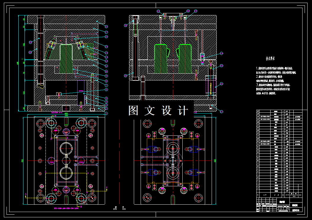 本文论述的带把水杯注塑模具采用三板式结构,即浇注系统凝料和制件在不同的分型面脱出,采用一模两腔的型腔布置,最后利用推杆将制件推出。哈弗块侧抽芯,推板推出。