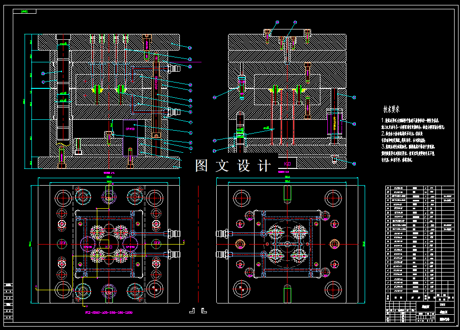 根据任务书的相关要求,塑料齿轮产品需要以大批量的生产模式进行生产,为了提升生产效率,以一模四腔结构设计注射模具。在定模板部件和中间板部件间开设凹凸模部件,注塑模具浇注系统设计成点浇口结构。基于本次注射成型加工生产的各项参数,使用HTF86J/TJ型注射机设备用于注射成型加工生产,在注塑模具定模板部件和中间板部件间设定注塑模具的分型面9。