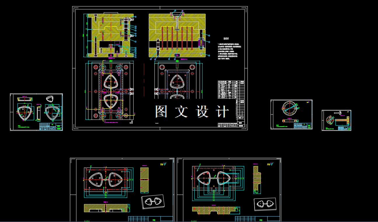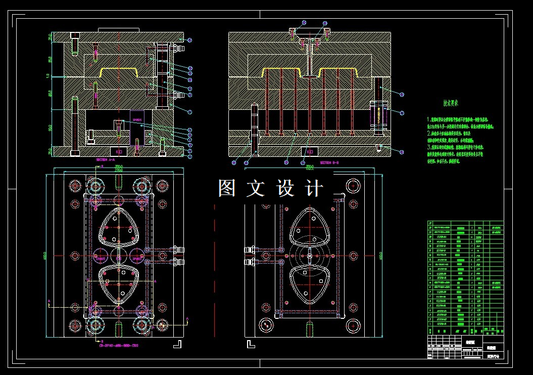 本模具采用一模二腔,侧浇口进料,推杆推出,两板模的设计方案,模架采用标准模架,注射机采用HTF160J/TJ型号,设置冷却系统,CAD和UG绘制二维总装图和零件图。选择模具合理的加工方法。欢迎下载学习。