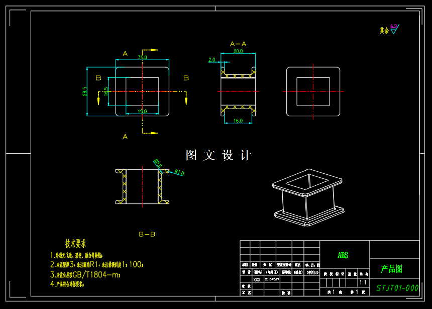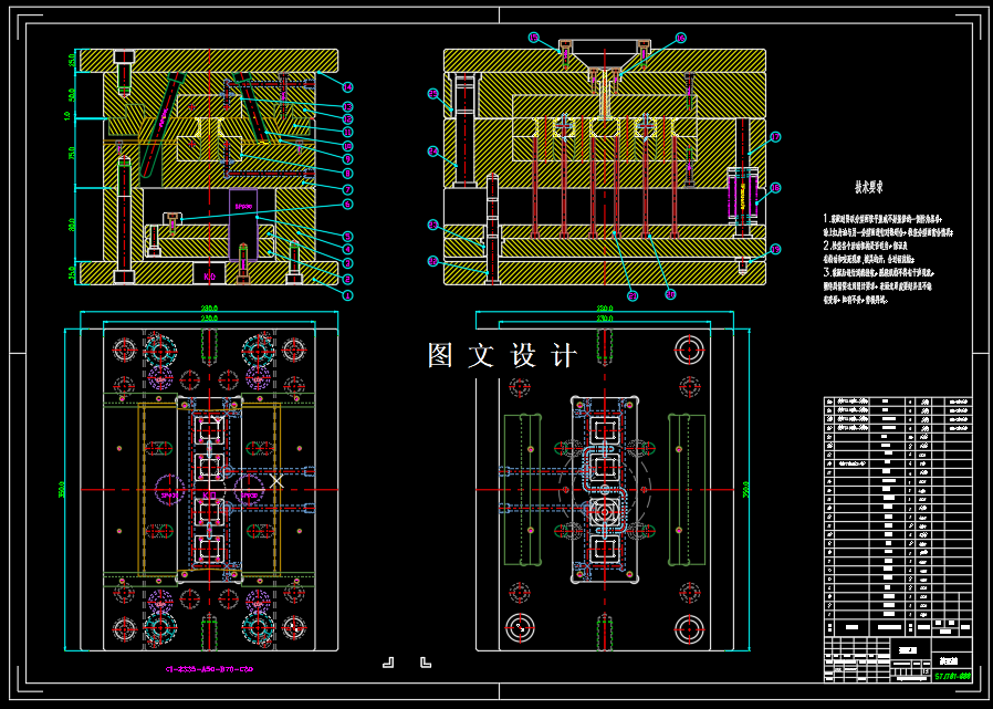 本次设计在针对产品进行工艺性分析后,确定模具分 型面、 型腔数目、 浇口形式、 位置大小; 其中最重要的是确定型芯和型腔的结构, 采用一模四腔,侧进胶。斜导柱滑块侧抽芯,推杆推出的方案。