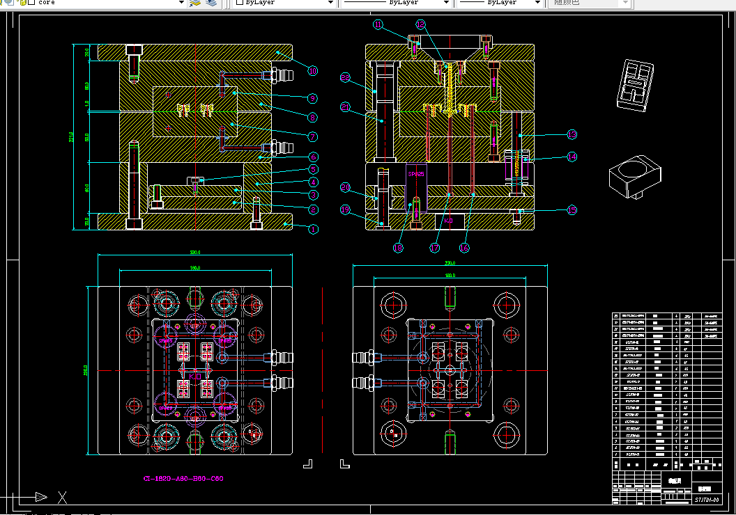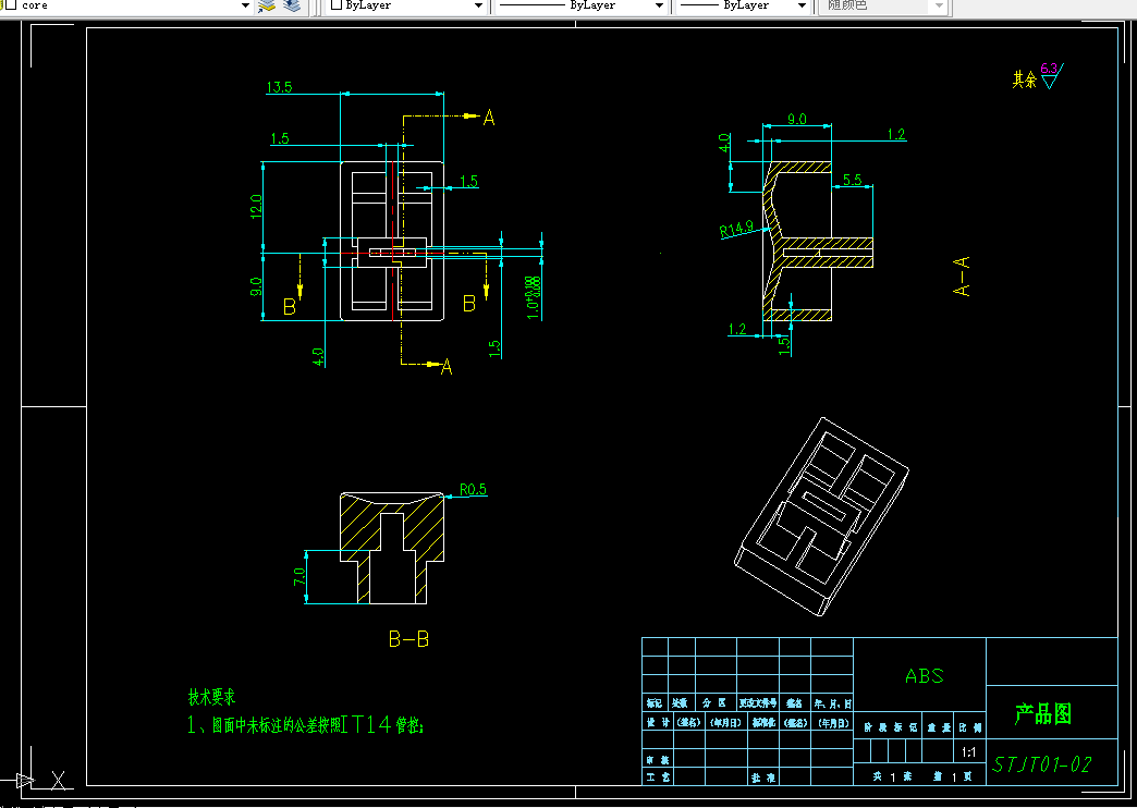 塑料是一种可塑性的合成高分子材料,具有重量轻且坚固,耐化学腐蚀, 电绝缘性好,价格便宜,可塑性好等特点,广泛应用于电脑、手机、汽车、电机、 电器、家电和通讯产品制造中。 注射成形是成形塑件的主要方法之一, 是指使用注射机将热塑性塑料熔体在 高压下注入到模具内经冷却固化获得产品的方法。注射的优点是生产速度快,效 率高,操作可自动化,能成型形状复杂的零件,特别适合大量生产。 本次设计的产品为按钮,具有重量轻,强度高,耐腐蚀,易清洁等 特点,为大批量生产产品。本次设计在针对产品进行工艺性分析后,确定模具分 型面、 型腔数目、 浇口形式、 位置大小; 其中最重要的是确定型芯和型腔的结构, 以及它们的定位和紧固方式。此外还进行了脱模机构的设计,合模导向机构的设 计,冷却系统的设计等。最后绘制完整的模具装配总图和主要的模具零件图及编 制成型零部件的制造加工工艺过程卡片。实践证明:该模具结构合理、可靠,并 能保证产品质量,对此类注射产品的模具设计有参考价值。