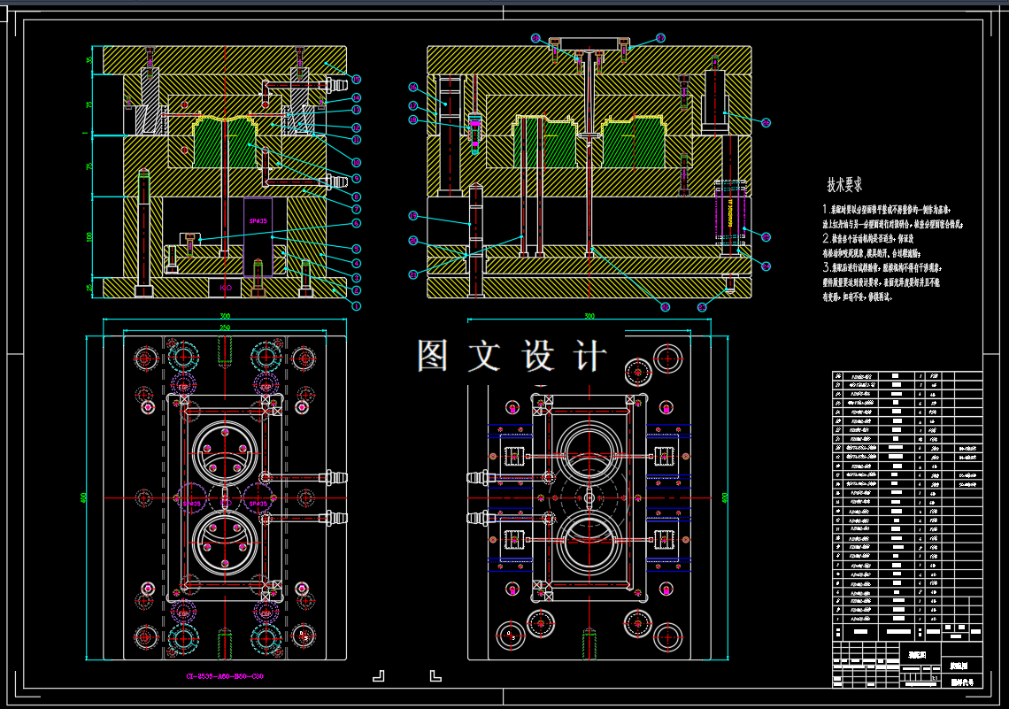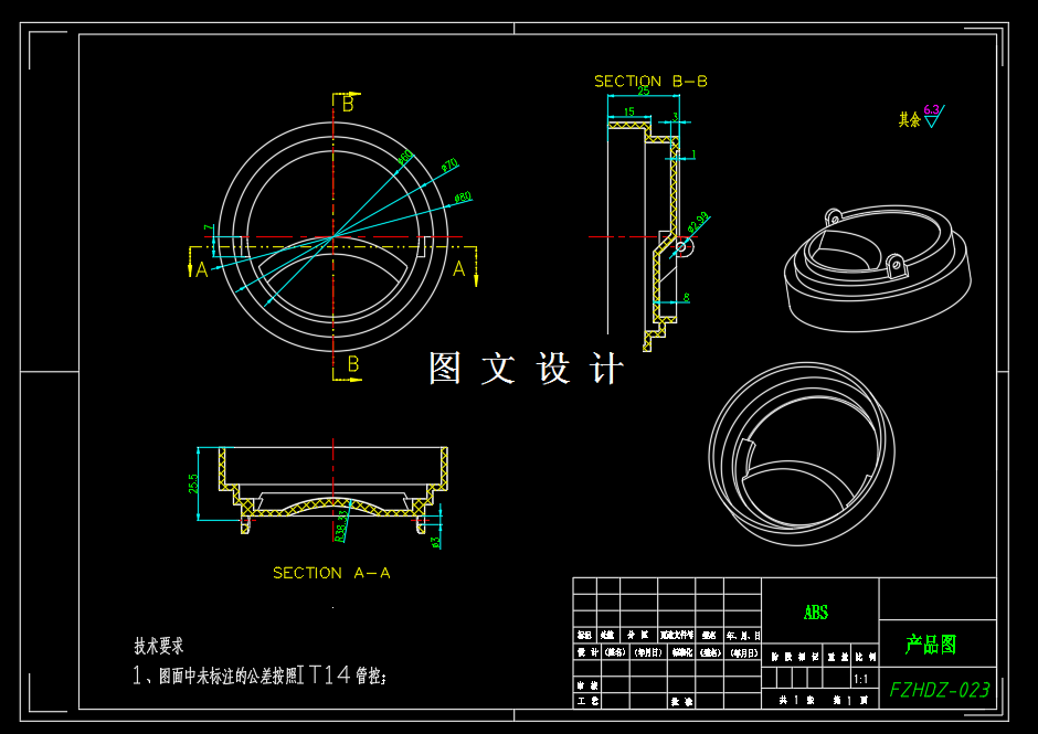 本设计主要是针对杯盖塑件的模具设计过程。由于杯盖前后盖都具有侧孔部分,所以本设计选用了侧向分型与抽芯机构采用一模两腔,侧进胶,定模隧道滑块侧抽芯,推杆退出,假三板模的设计方案。