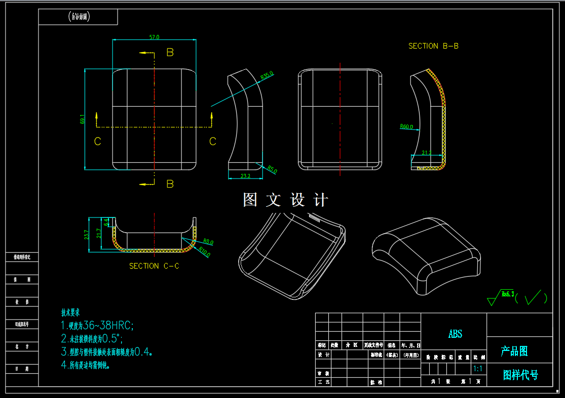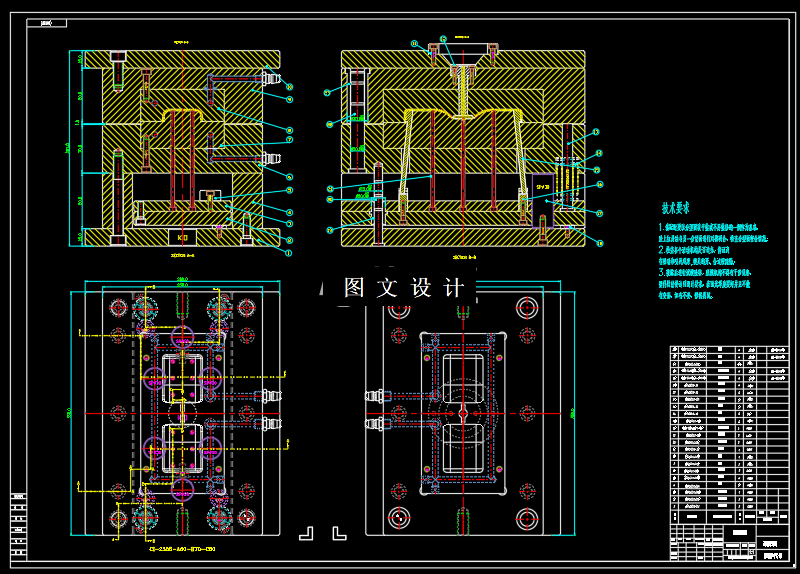 本文采用了对应的成型系统来保证模具加工的可行性、浇注系统方面尽可能的贴合实际注塑生产工艺需求、冷却系统设计方面能够使得塑件的冷却更加均匀合理。 采用一模两腔 侧进胶,斜顶侧抽芯,推杆推出的设计方案。