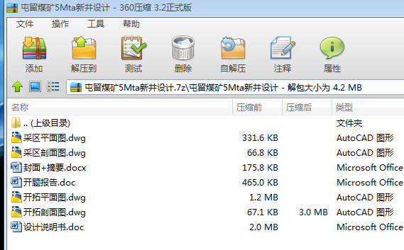 此设计共包括9章:①矿区概述与地质特征;②井田境界/储量;③设计生产能力及服务年限;④井田开拓;⑤采区巷道布置;⑥采煤方法;⑦采区运输、通风、排水系统;⑧矿井提升;⑨矿井通风与安全。
