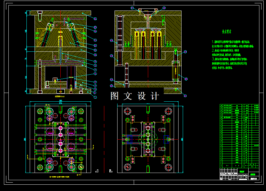 本次设计的产品为扫把手柄,在针对产品进行工艺性分析后,确定模具分 型面、 型腔数目、 浇口形式、 位置大小.采用一模四腔,侧进胶 ,哈弗块侧抽芯,推板推出的方案。