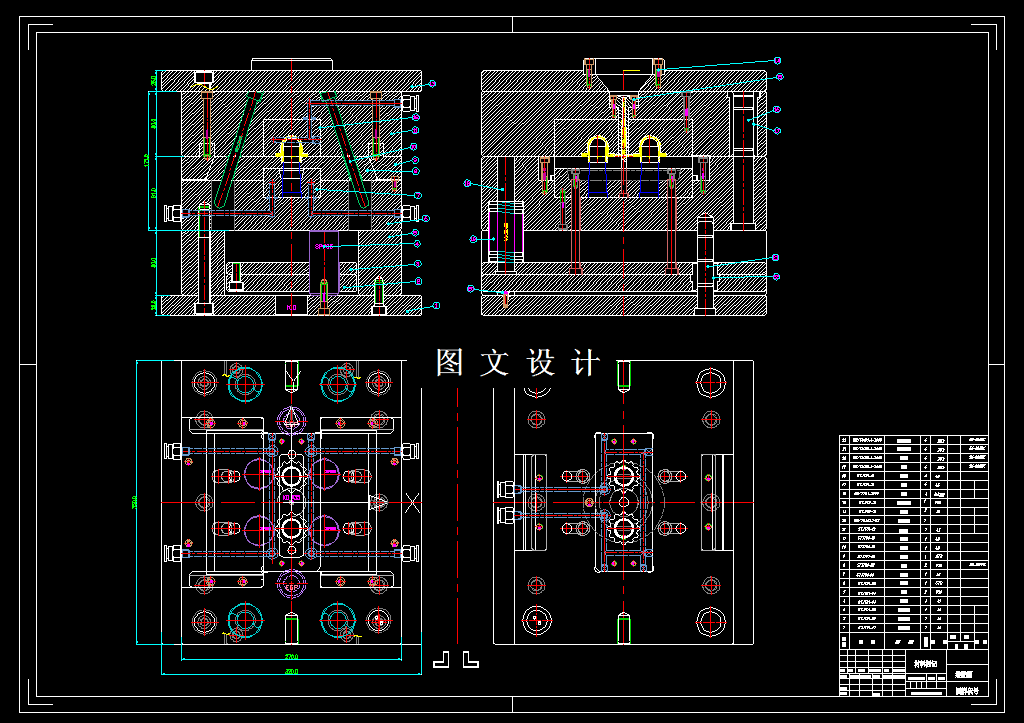 采用一模两腔,侧进胶,斜导柱滑块侧抽芯,推杆退出的方案,注射模的基本组成是:定模机构、动模机构、浇注系统、导向装置、顶出机构、芯机构、冷却和加热装置、排气系统。