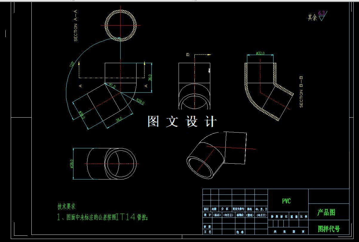 本次设计的产品为120度弯管,具有重量轻,强度高,耐腐蚀,易清洁等 特点,为大批量生产产品。本次设计在针对产品进行工艺性分析后,确定模具分 型面、 型腔数目、 浇口形式、 位置大小; 其中最重要的是确定型芯和型腔的结构, 以及它们的定位和紧固方式。