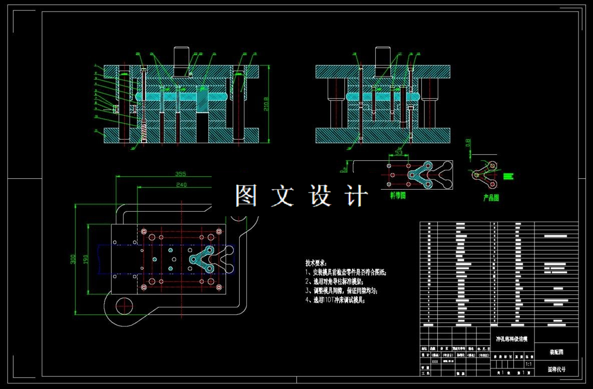 本次设计阐述了冲压级进模的结构设计及工作过程。本模具性能可靠,运行平稳,提高了产品质量和生产效率,降低劳动强度和生产成本。 设计连续模,先要设计条料排样图。工件直排材料利用率最高。