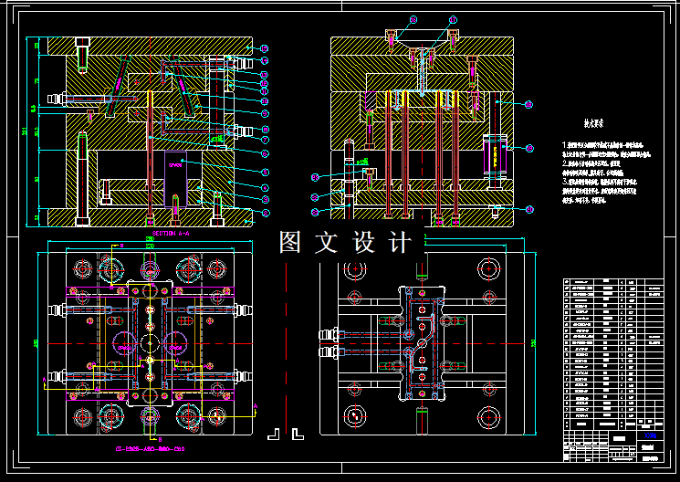 本次设计的产品为塑料帽,由于产品有凹槽,采用的是一模四腔,侧进胶,动模斜导柱滑块侧抽芯,推管推出的方案,此方案可以满足大批量生产的需求,还进行了脱模机构的设计,合模导向机构的设 计,冷却系统的设计等。欢迎下载学习。