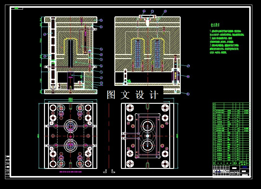 采用了一模二腔的结构布局形式,该方案结构简单可靠。对于本文重点的模具设计七大系统,分别采用了点浇口的浇注系统;采用冷却水道来降低温度,控制注塑成型周期;在成型系统零部件的设计上,采用了镶嵌式的型芯和型腔,这两个核心零部件采用专门的模具钢材制造与加工,寿命更长久;1098369