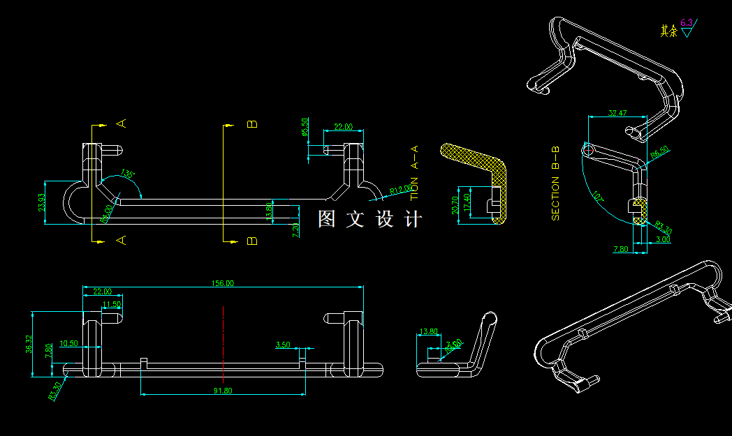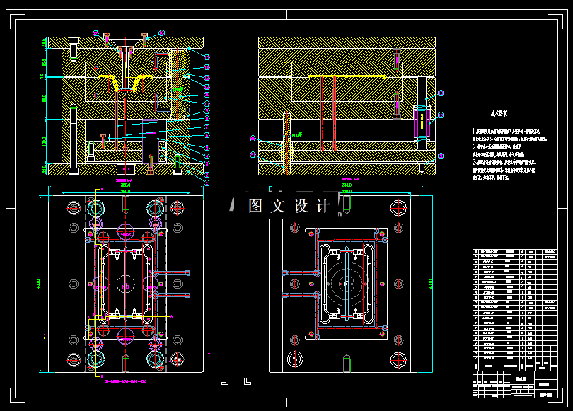本次毕业设计的产品为整理箱把手,具有重量轻,强度高,耐腐蚀,易清洁等 特点,为大批量生产产品。本次设计在针对产品进行工艺性分析后,确定型芯和型腔的结构, 以及它们的定位和紧固方式。此外还进行了脱模机构的设计,合模导向机构的设 计,冷却系统的设计等。