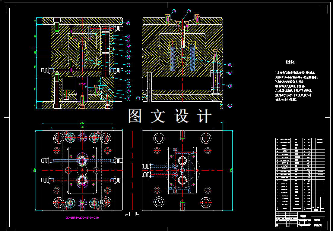 通过根据形状、尺寸、精度及表面质量要求的分析结果,确定所需的模塑成型方案,制品的后加工、分型面的选择、型腔的数目和排列、成型零件的结构、浇注系统等。采用一模两腔,推板推出的方案。