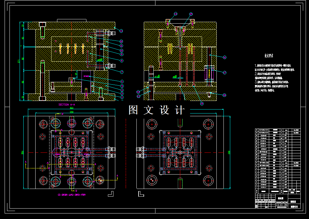 本模具采用一模二腔,侧浇口进料,此产品结构简单,不需要侧抽芯机构,水路采用一进一出的环形冷却水路,推杆推出的方案可以最大程度的降低模具的制造成本,欢迎下载交流学习。