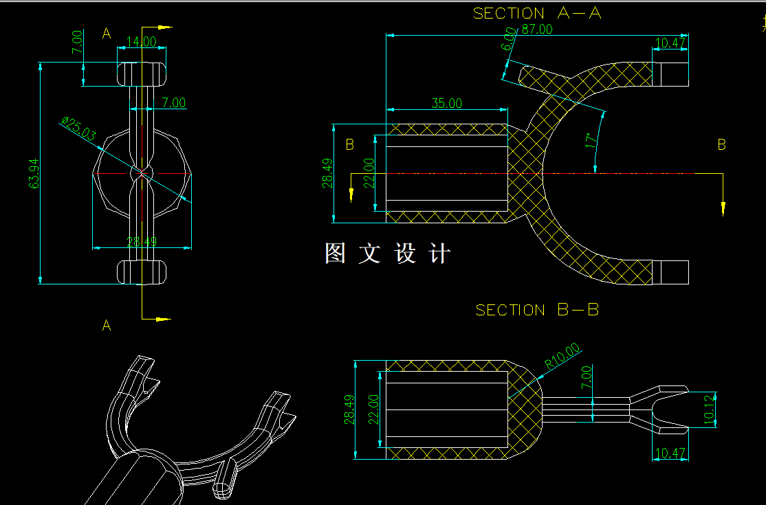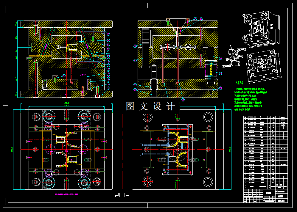 本设计是衣叉的一模两腔注塑模具设计,在整个模具设计过程中,涉及到了塑件的结构分析、对塑件进行模流分析、注塑机和模架的选择及注塑机的一些重要工艺参数的校核,并详细叙述了模具设计中的分型面设计、浇注系统设计、成型零件设计、顶出机构设计和冷却系统设计。