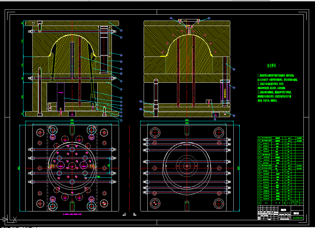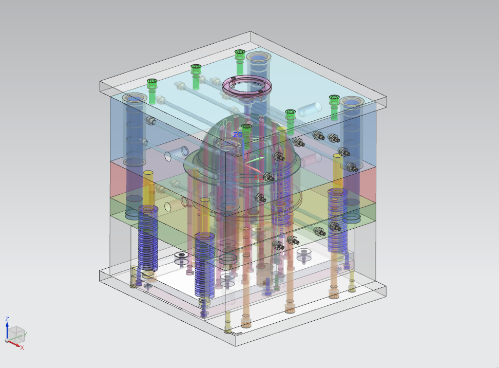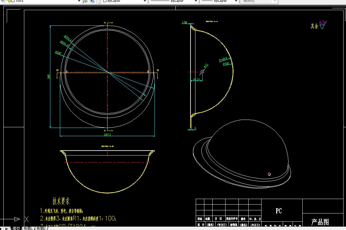 本产品是日常应用的头盔,且实用性强。该产品设计为大批量生产,故设计的模具要有较高的注塑效率,浇注系统要能够自动脱模,此外为保证塑件表面质量采用直接浇口,因此选用单分型面注射模,直接浇口自动脱模结构。模具的型腔选择一模一腔结构,浇注系统采用直接浇口成形,推出形式为推杆推出机构完成塑件的推出。塑件的工艺性能要求注塑模中有冷却系统,因此在模具设计中也进行了设计。本次的设计查阅了大量的专业资料和书籍,丰富了设计过程。