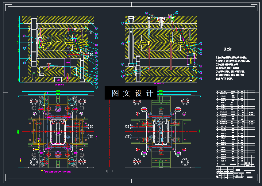 这一次设计的模具是根据实物选择题目,查看实物的结构,分析别人这样设计的原因,从而提高自己,这次设计先查看一些模具的资料,发现目前模具行业用的软件类型.一般使用UG与cad结合的方式,前期先使用cad软件排位,进行模具的布局,使导向机构,成型机构,冷却机构,顶出机构在模具里面合理的布局,做到不干涉,还能节省模具的空间,降低模具的成本,一般模具都会使用标准模架,国内的模具的标准模架一般是龙记模架比较多.