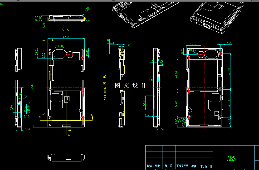 本说明书是对手机中框进行的设计与分析,本设计主要运用了ug软件,设计出了一个一模一腔的手机注塑模具,其中设计也包括成型零件的设计、浇注系统的设计、推出机构的设计、排气系统的设计、侧抽结构等内容。然后在通过对模具型芯、型腔、拉料杆等相关主要部件尺寸的计算完成注塑模具总装图和非标零件图的绘制。