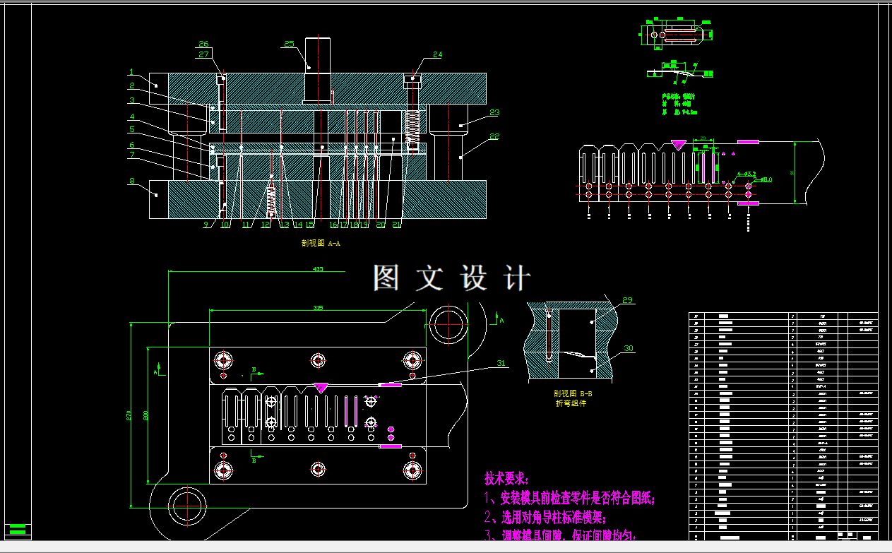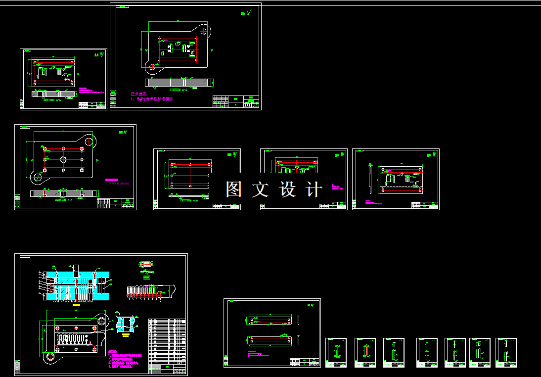 本次设计绘图采用CAD进行,CAD为计算机辅助制图工具,是一款专业机械平面制图软件,具有很强的图象处理功能。模具属于精密机械产品,它主要由机械零件和机构组成,如成形工作零件、导向零件、支承零件、定位零件及送料机构、抽芯机构、推出机构等。