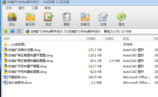 古城煤矿0.9Mt/a新井设计。古城煤矿位于兖州市之东,曲阜市以西,分属兖州、曲阜两市,交通便利。井田走向(南北)长约4.7km,倾向(东西)长约4.6km,总面积为14.35km2。主采煤层为3#煤,煤层倾角平均为5 ,平均总厚度为5.0m。井田地质条件较为简单。