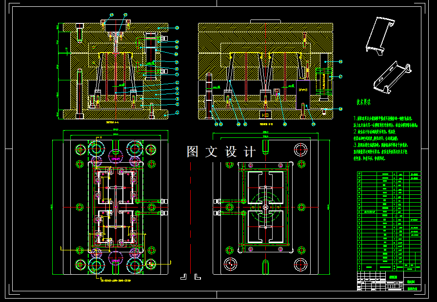 本次主要重点对塑件的成型原理、原料选用和注射技术进行分析。通过根据形状、尺寸、精度及表面质量要求的分析结果,确定所需的模塑成型方案,制品的后加工、分型面的选择、型腔的数目和排列、成型零件的结构、浇注系统等。