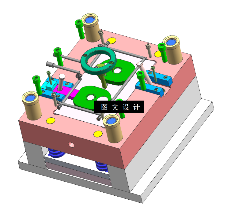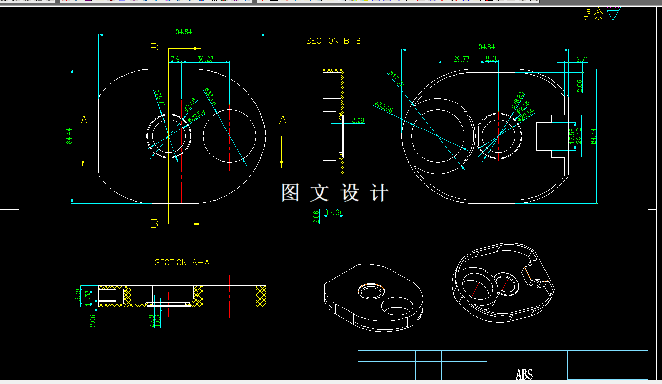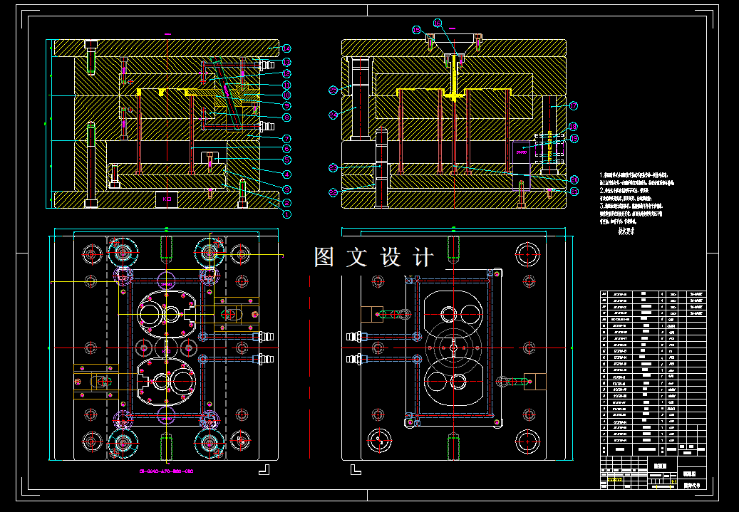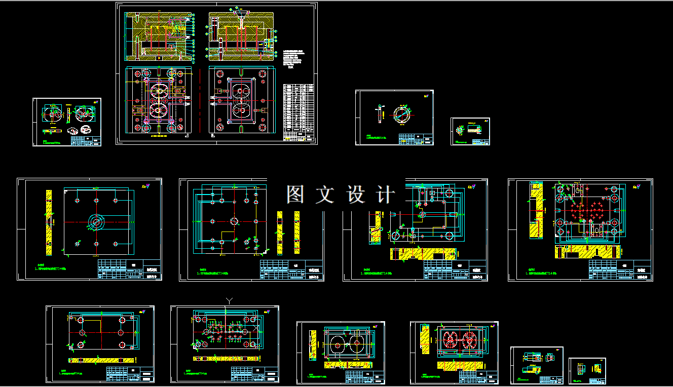 电饭煲控制盒底座注塑模具设计图纸,模具采用两板式结构,分型面选在塑件的最大外轮廓,型腔数量采用一模两腔的结构形式;冷却系统采用冷流道浇注系统,矩形侧浇口。脱模机构为推杆推出机构。
