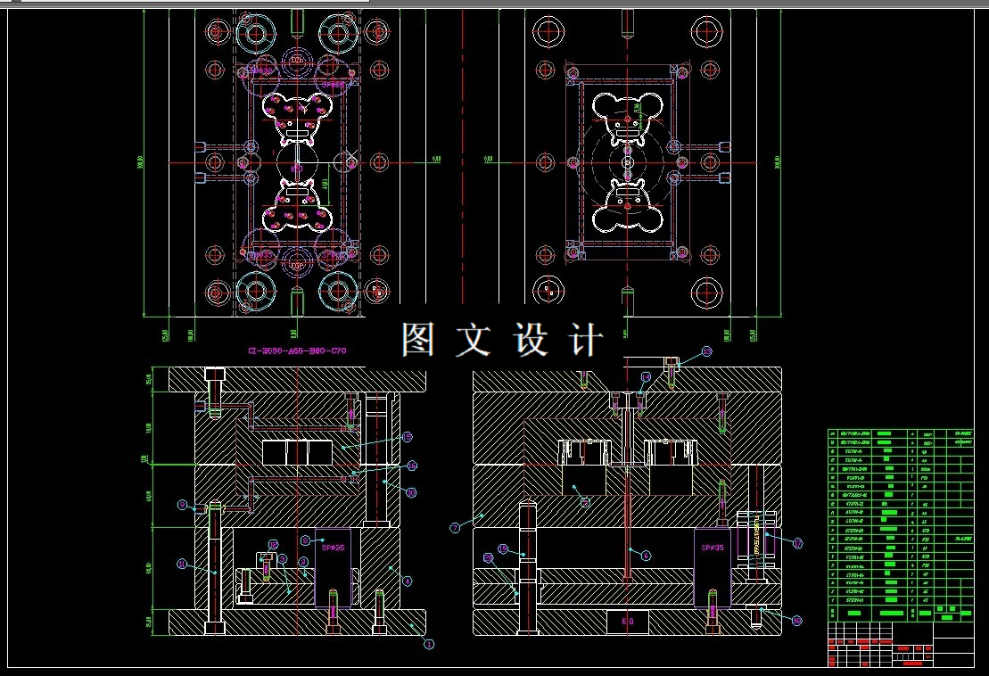 本文对闹钟后盖的的结构特点、材料选用、材料性能及成型工艺特点进行分析,选择合适的塑料材料。 其次,本文对闹钟后盖的注塑模具的结构进行设计,设计内容包括分型面的设计、定位机构的设计、合模导向及脱模机构的设计。 最后,进行相关模具设计计算,其中包括脱模力、冷却系统参数、成型零件尺寸等的计算。