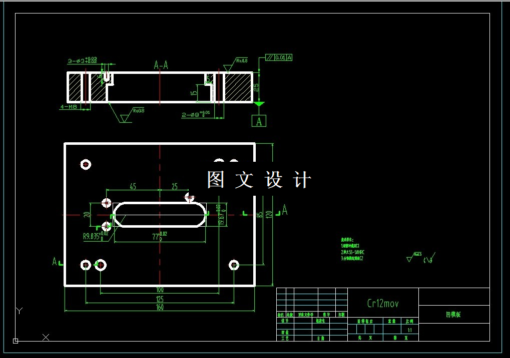 综合工件形状结构,考虑排样条料的强度,模具寿命和尺寸精度,决定采用有废料的排样方案。以下为本次模具的排样方案,我们不采用2个产品一起冲裁的方案,而是选用间隔冲裁完后,旋转条料再把余下的料冲裁完。因此这里选用单列冲裁较为合适。