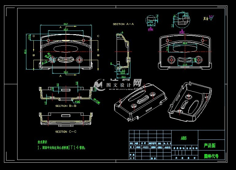 本次设计的产品为盒盖面板,具有重量轻,强度高,耐腐蚀,易清洁等 特点,为大批量生产产品。本次设计在针对产品进行工艺性分析后,确定模具分 型面、 型腔数目、 浇口形式、 位置大小; 其中最重要的是确定型芯和型腔的结构, 以及它们的定位和紧固方式。采用的是一模两腔,侧进胶,顶针顶出,斜顶侧抽芯的方案设计。