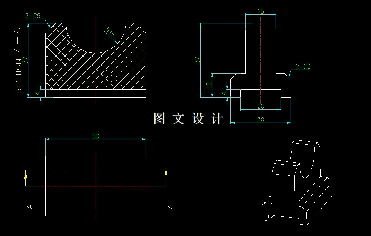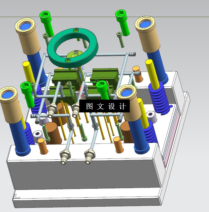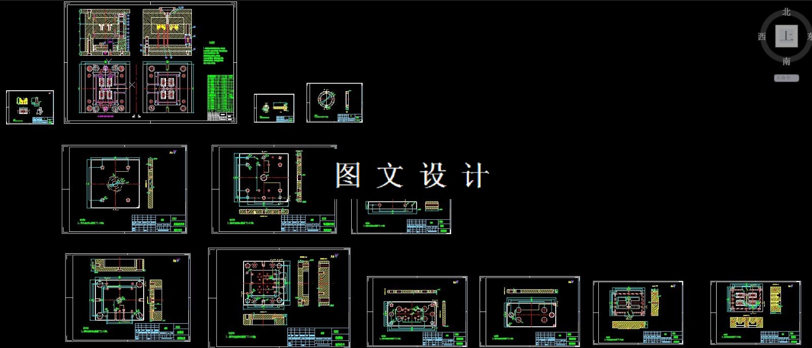 本次设计的产品为塑料轴承座,进行了脱模机构的设计,合模导向机构的设 计,冷却系统的设计等。最后绘制完整的模具装配总图和主要的模具零件图及编 制成型零部件的制造加工工艺过程卡片。采用的是一模四腔,侧进胶,顶针顶出的方案设计。