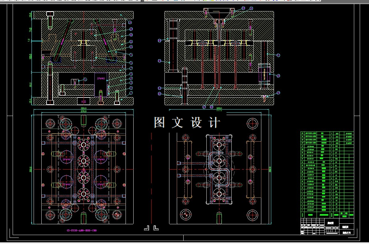 线圈骨架注塑模具设计图纸-带缺口,次毕业设计的产品为线圈骨架,具有重量轻,强度高,耐腐蚀,易清洁等 特点,为大批量生产产品。本次设计在针对产品进行工艺性分析后,确定模具分 型面、 型腔数目、 浇口形式、 位置大小; 其中最重要的是确定型芯和型腔的结构, 以及它们的定位和紧固方式。采用一模四腔,侧进胶,斜导柱滑块侧抽芯的方案。