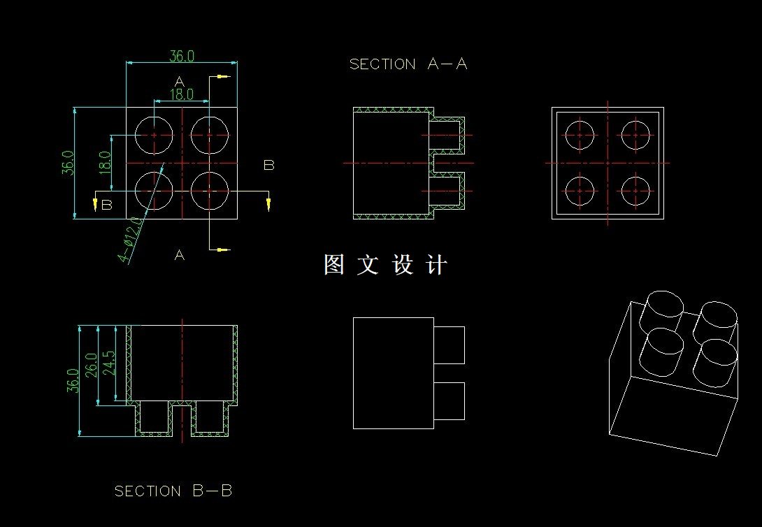 塑料积木A注塑模具设计图纸-尺寸36,本文是关于塑料积木A注塑模具的设计,塑件虽然不是很复杂,但其设计的难点在于推出机构和浇注系统的设计。本次设计使用UG8.5,胡波外挂来进行模架、螺钉、顶杆等零件的选取,设计安装完成后,直接导出2D装配图及相关零件图,大大缩短了设计时间。 855123
