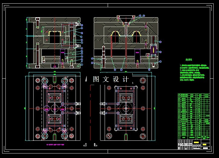 本次设计的内容为塑料壳体塑料模具设计,该模具为注塑成型模具。本设计采用cad软件,绘制了模具的装配图,包括主试图,剖视图以及其他辅助视图。清晰地展示出模具的组成,包括主流道,分流道,型芯,型腔,推出机构,浇口等系统。采用侧浇口,一模两腔,两板式单分型面进行脱模。 854422
