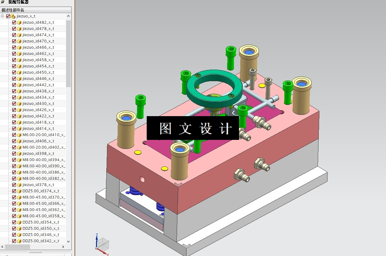 本次设计的产品为接座,具有重量轻,强度高,耐腐蚀,易清洁等 特点,为大批量生产产品。本次设计在针对产品进行工艺性分析后,确定模具分 型面、 型腔数目、 浇口形式、 位置大小; 其中最重要的是确定型芯和型腔的结构, 以及它们的定位和紧固方式。采用一模两腔,侧进胶,顶针顶出的方式进行的绘图,图纸比较细致,欢迎下载。