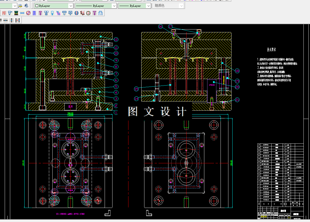 从动轮注塑模具设计图纸-一模两腔,塑件形状较简单,重量较轻,生产批量较大。所以应使用多型腔注射模具。模具采用一模二腔、平衡布置。采用一模两腔,动模滑块侧抽芯的方案进行脱模。
