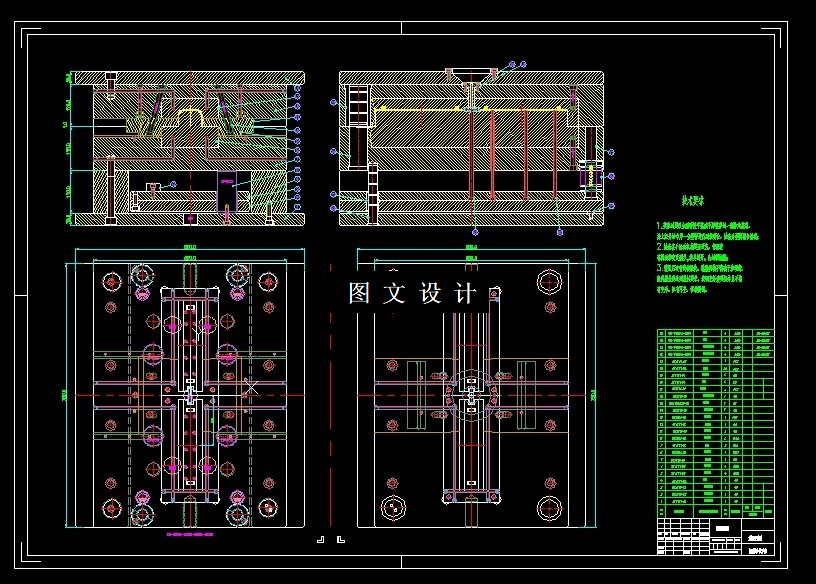 本次设计以注射应急灯外壳模具为主线,综合了成型工艺分析,模具结构设计,最后到模具零件的加工方法,模具总的装配等一系列模具生产的所有过程。能很好的学习致用的效果。采用一模两腔,滑块侧抽芯,顶针顶出的方案进行绘图。