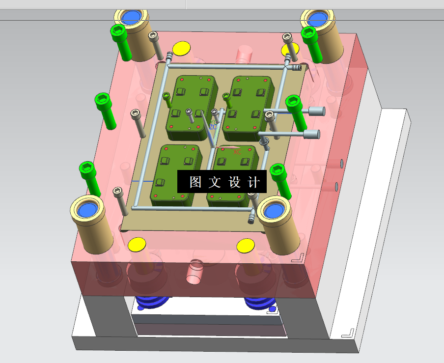 通信产品接线盒外壳注塑模具设计图纸,一模四腔,顶针顶出,侧进胶,三维图,二维图一套设计图纸,本次设计的产品为通信产品接线盒外壳,根据实物建模,原创设计,欢迎下载
