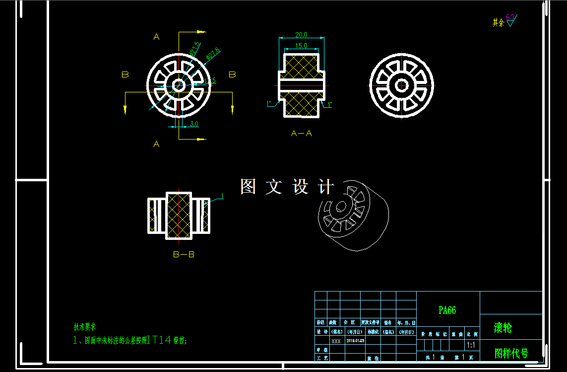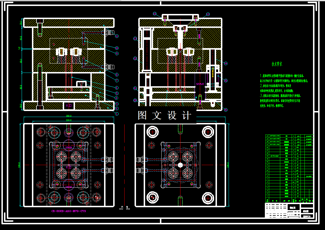 套管滚轮注塑模具设计图纸-一模四腔,三维图,二维图,完整的一份设计图纸。本文主要介绍的是套管注塑模具的设计方法。首先分析了套管制件的工艺特点,包括材料性能、成型特性与条件、结构工艺性等,并选择了成型设备。接着介绍了套管注塑模的分型面的选择、型腔数目的确定及布置,重点介绍了浇注系统、成型零件、合模导向机构、脱模机构、定距分型机构以及冷却系统的设计。然后选择标准模架和模具材料,并对注射机的工艺参数进行相关校核。最后对模具的工作原理进行阐述,以及在安装调试过程中可能出现的问题进行总结、分析,并给出了相应的解决方法。