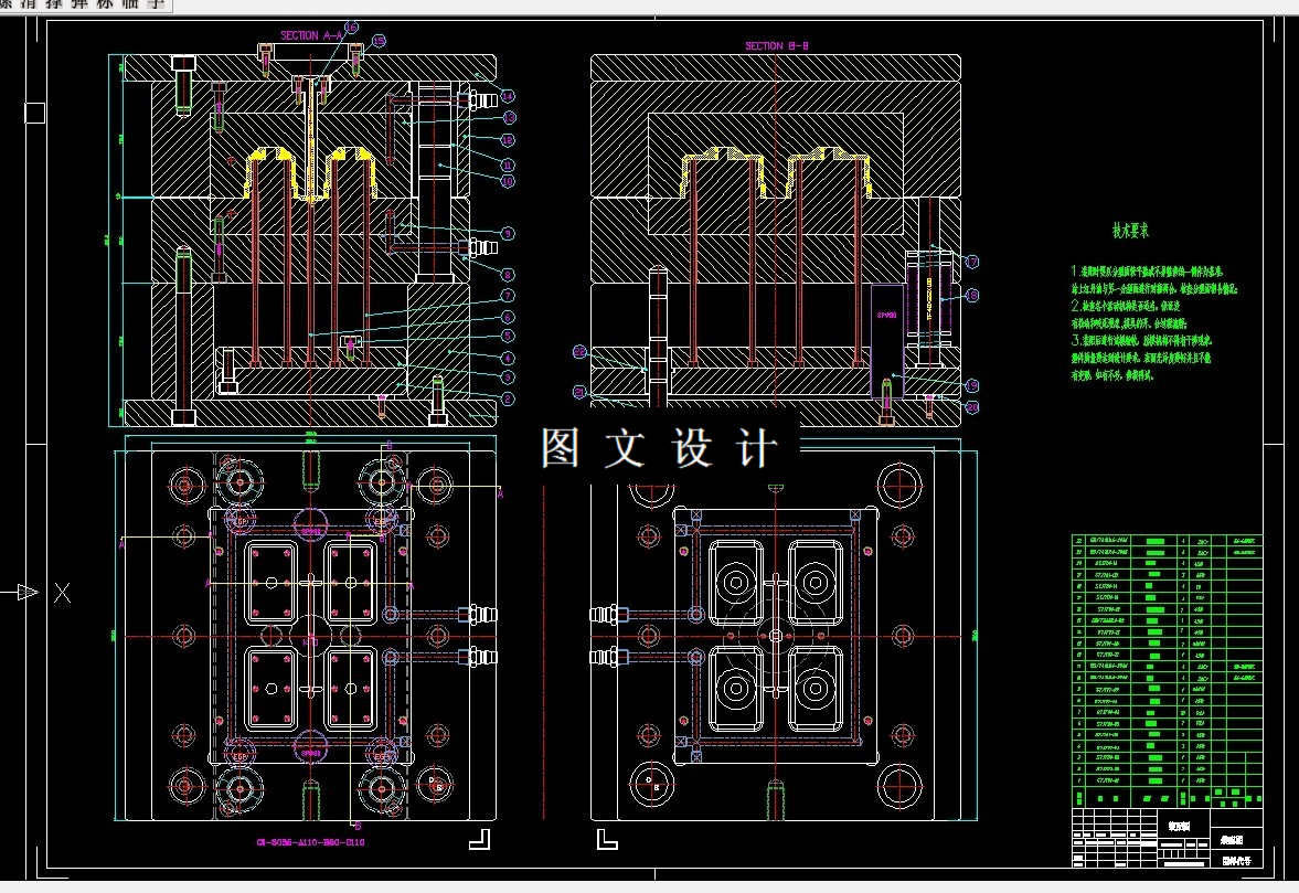 底座注塑模具设计图纸-一模四腔,三维图,二维图,完整的一份设计,三维(含UG sw 两个软件格式的装配图)。本文是关于底座注塑模具的设计,塑件虽然不是很复杂,但其设计的难点在于侧向抽芯机构和浇注系统的设计。本次设计主要使用UG8.5软件,结合生产实践来设计底座注塑模具的整体结构,通过对塑件形状、尺寸等方面的分析来确定其工艺。主要包括分型面的选择,浇注系统的设计,成型零件的计算,顶出机构和冷却系统的设计等,此外还对其脱模力进行计算,并选择合适的注塑机。本次设计使用UG8.5,胡波外挂来进行模架、螺钉、顶杆等零件的选取,设计安装完成后,直接导出2D装配图及相关零件图,大大缩短了设计时间。724773