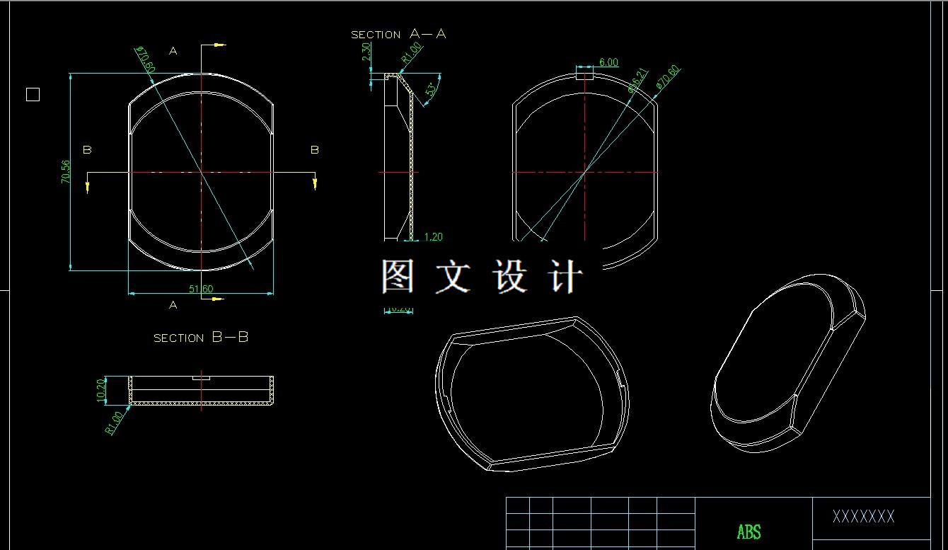 采用一模四腔,侧进胶,顶针顶出的方案设计,设计的三维是用UG软件,二维用cad。先排位做装配图,然后再做三维,做后做说明书,完整的一份设计图纸,仅供参考。724769