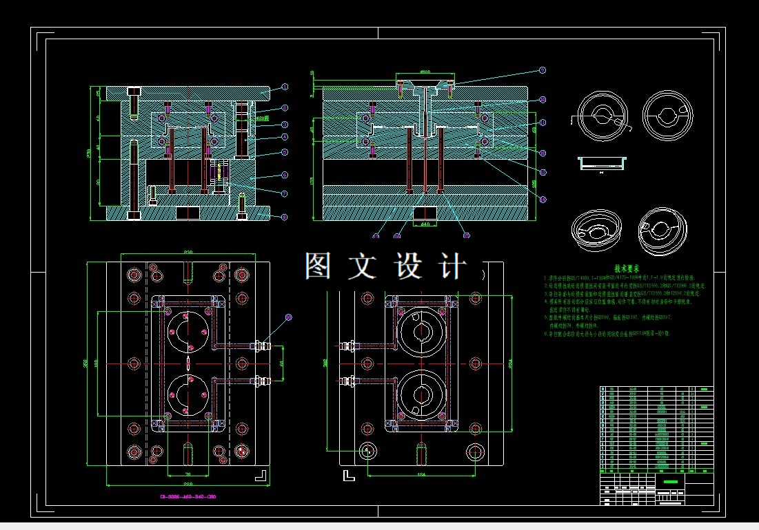杯盖注塑模具设计图纸-一模两腔,进行模具设计的目的就是保证制造出的塑件能够满足其功能要求,成为功能的设计,而且需要满足塑件的一些相应的参数指标,由于杯盖注塑是日常所用的产品,因此对外观质量和表面质量有一定的要求,即强度和刚度要好,根据任务书要求选用的杯盖注塑的材料为ABS,生产批次为大批量,精度等级为MT4