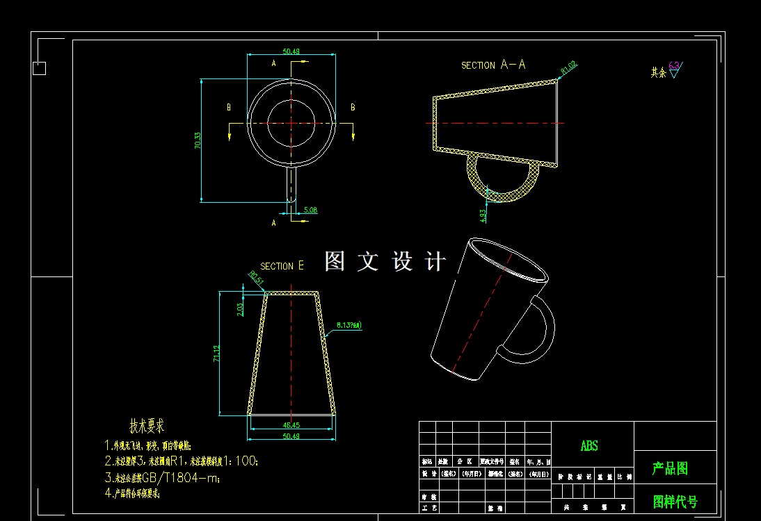 带把水杯注塑模具设计,一模两腔,滑块侧抽芯,推板推出的方案,通过带把水杯注塑模设计,了解注塑模具架构的过程和原理,根据带把水杯的结构对制件进行了工艺分析,提出合理的注射成型条件和成型工艺;对塑件的表面精度和表面质量进行了讨论;通过对带把水杯注塑模的设计,对模架进行了确定,并设计了导向和定位机构;阐述模具浇注系统和脱模机构的设计方法;