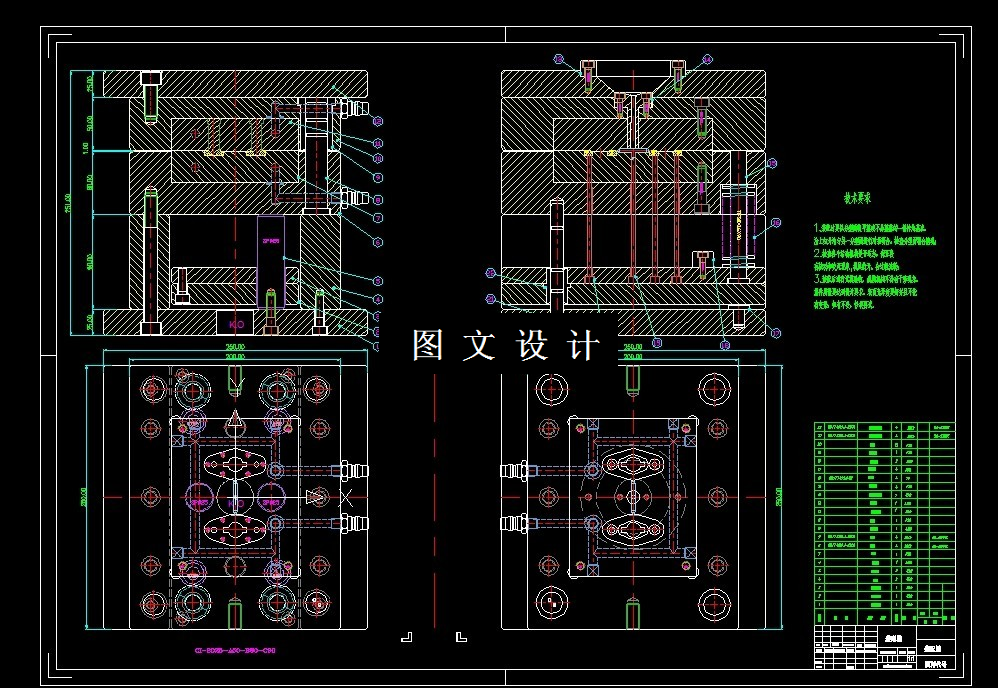 锁盖注塑模具设计-一模两腔,三维图,二维图,完整的一套设计,本次设计的产品为锁盖,具有重量轻,强度高,耐腐蚀,易清洁等 特点。本次设计在针对产品进行工艺性分析后,确定模具分 型面、 型腔数目、 浇口形式、 位置大小; 其中最重要的是确定型芯和型腔的结构, 以及它们的定位和紧固方式。此外还进行了脱模机构的设计,合模导向机构的设 计,冷却系统的设计等。最后绘制完整的模具装配总图和主要的模具零件图及编 制成型零部件的制造加工工艺过程卡片。实践证明:该模具结构合理、可靠,并 能保证产品质量,对此类注射产品的模具设计有参考价值。