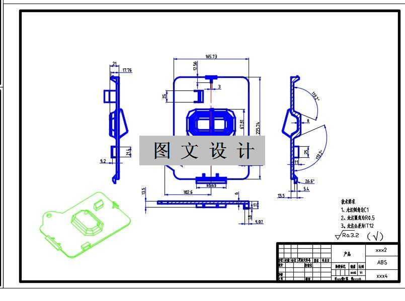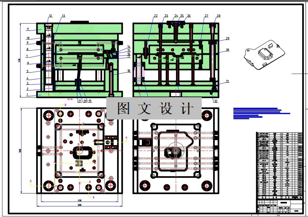 设计中主要进行的工作有首先是对塑料进行工艺性能的分析并画出塑件零件图,以及主流道的设计、模具型腔的分部以及型腔位置的选择,并要画出它们的零件图,模架的选择和校核、注塑机的选取和校核等,而其中最重要的一部就是对模具结构中型腔、型芯各径向尺寸和高度尺寸的计算,这些工作都要在查阅有关书籍后进行,总的设计,最后要画出模具设计的总装配图,并要对模具进行装配和试模,对其中出现的问题对模具进行改进,直到最后的零件符合设计要求。