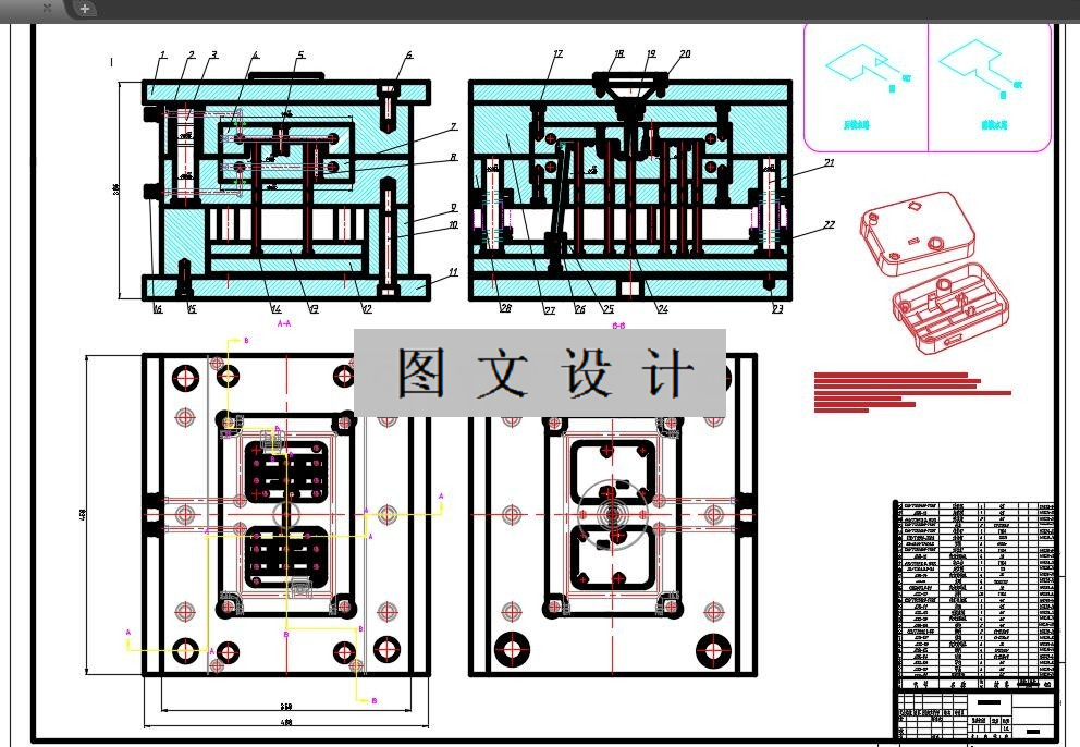 此说明书介绍了电器零件塑料结构件注塑成型工艺分析及及模具设计。着重介绍了继电器塑料结构件的模具设计。该模具为单板式单分型面注塑模,由于模具的型芯型腔的结构尺寸不是很大,结构相对较为简单,型芯型腔结构采用组合式,可以采用数控铣、电火花、线切割等进行加工。