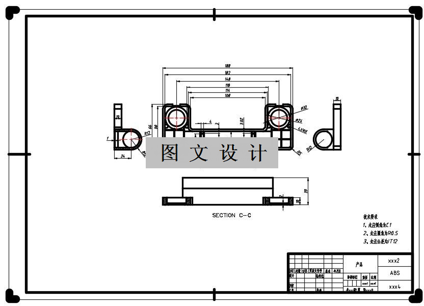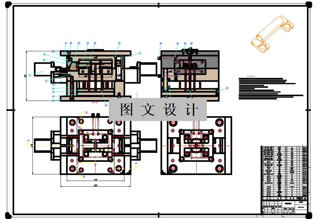 在本设计中进行了塑件工艺性分析、总体方案的设计、注塑机的选择、浇注系统的设计、成型零件的设计、脱模机构的设计、导向和定位机构的设计、模架的选择、冷却系统的设计和计算等设计工作。在本次设计中,采用一模4腔,侧交口。推杆推出的方式,进行综合设计