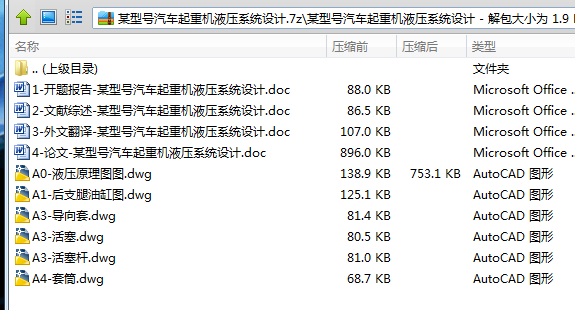 首先分析了汽车起重机五种主要运动机构的运动,然后根据每个动作设计了各部分的液压回路,完成了液压系统的整体液压原理图。然后,根据机械性能参数和液压性能参数,完成液压元件的选择和计算,完成起重机的机械分析和油缸的结构设计。最后对液压系统进行性能校核。