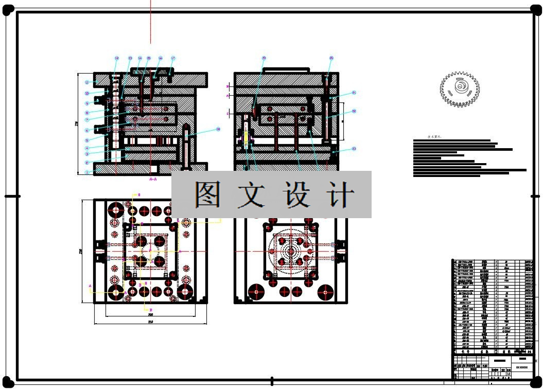 模具设计必须先规划整体的设计,此次整体结构设计的主要内容是:模具分型面的设计、流道的布置、浇口位置的选择、模具工作零件的结构设计和它们的理论计算,还有其他重要部件的设计将会在零件图中,计算的数据在零件图中也会更加具体。