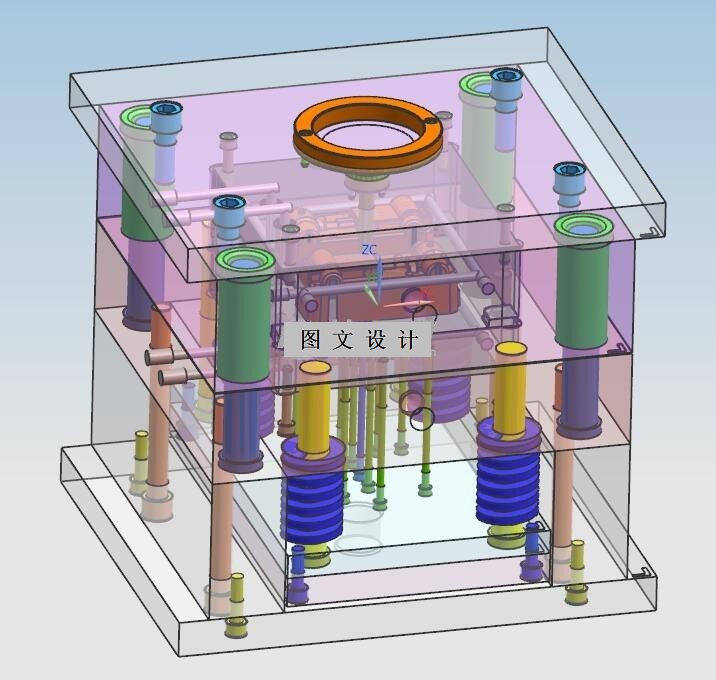 本设计分析了塑件的结构,提出了模具设计的关键点,设计了模具的整体结构。根据塑件分型面的位置,设计了推件板和斜顶杆的推出结构,零件采用了双分型面的点浇口,提高了零件的外面质量。通过对塑件进行工艺的分析及其结构分析,从产品结构工艺性,具体模具结构出发,对模具的浇注系统、模具成型部分的结构、顶出系统、注射机的选择及有关参数的校核都有详细的设计。该模具一模2腔,采用顶针顶出结构。经过生产验证,该模具结构合理,动作可靠。