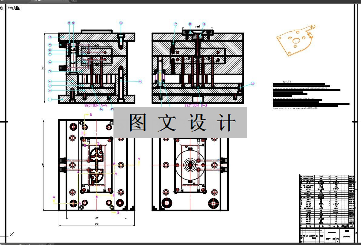 第一阶段是开题阶段,主要要求我们熟悉本设计所涉及的有关知识,初步了解塑件的结构和成型方法,确定模具结构和设计总体方案。第二阶段是中期阶段,通过第一阶段的学习和准备,在确定了模具总体结构和方案中,运用CAD软件绘制出模具的总装配图,确定一些主要部件的成形机构和成形原理。第三阶段是后期阶段,在这个阶段中,根据自己设计的装配图完成零件图的绘制,完成装配图。